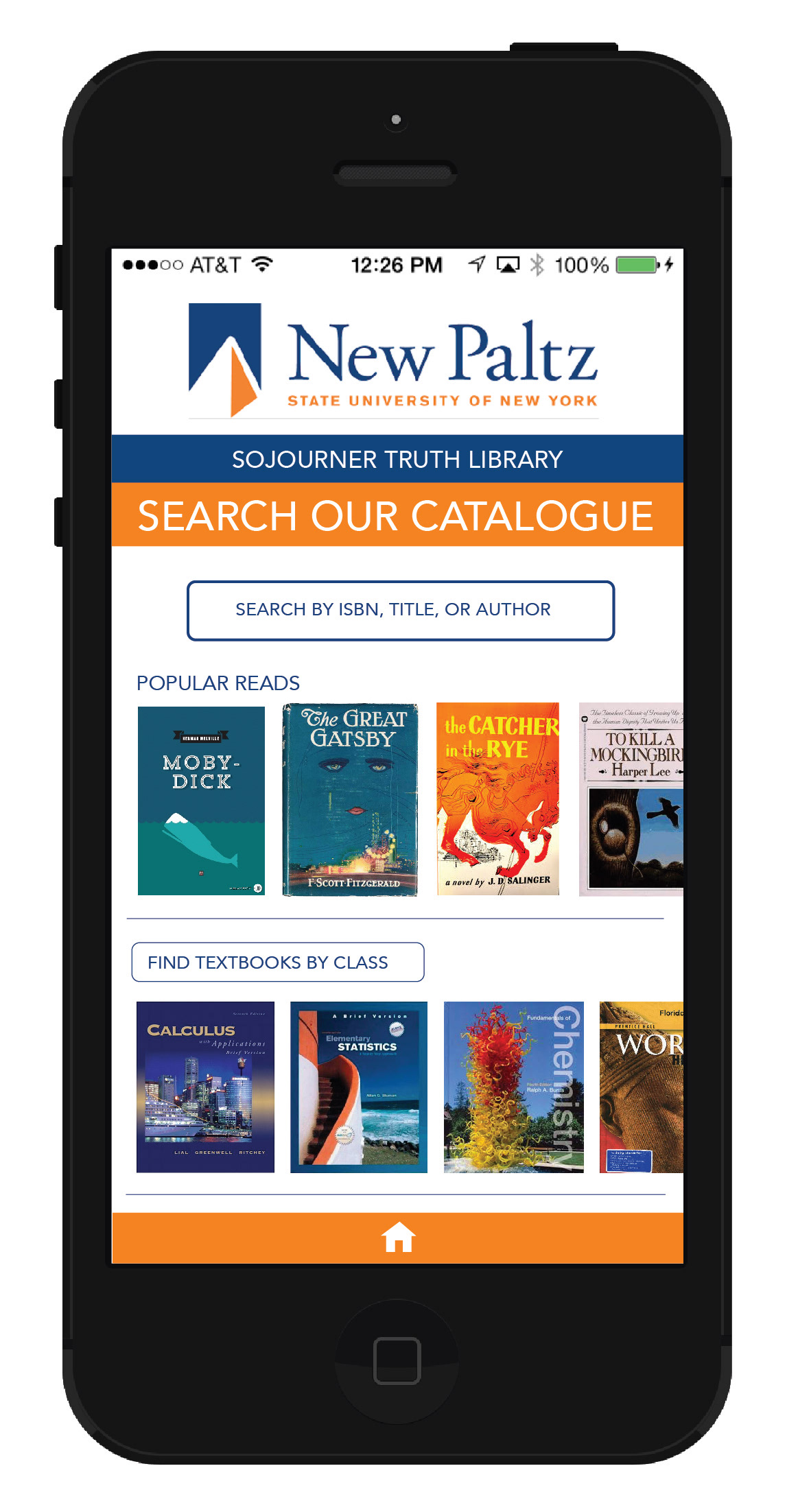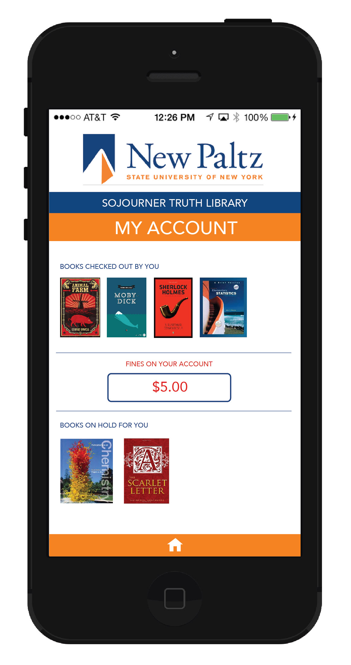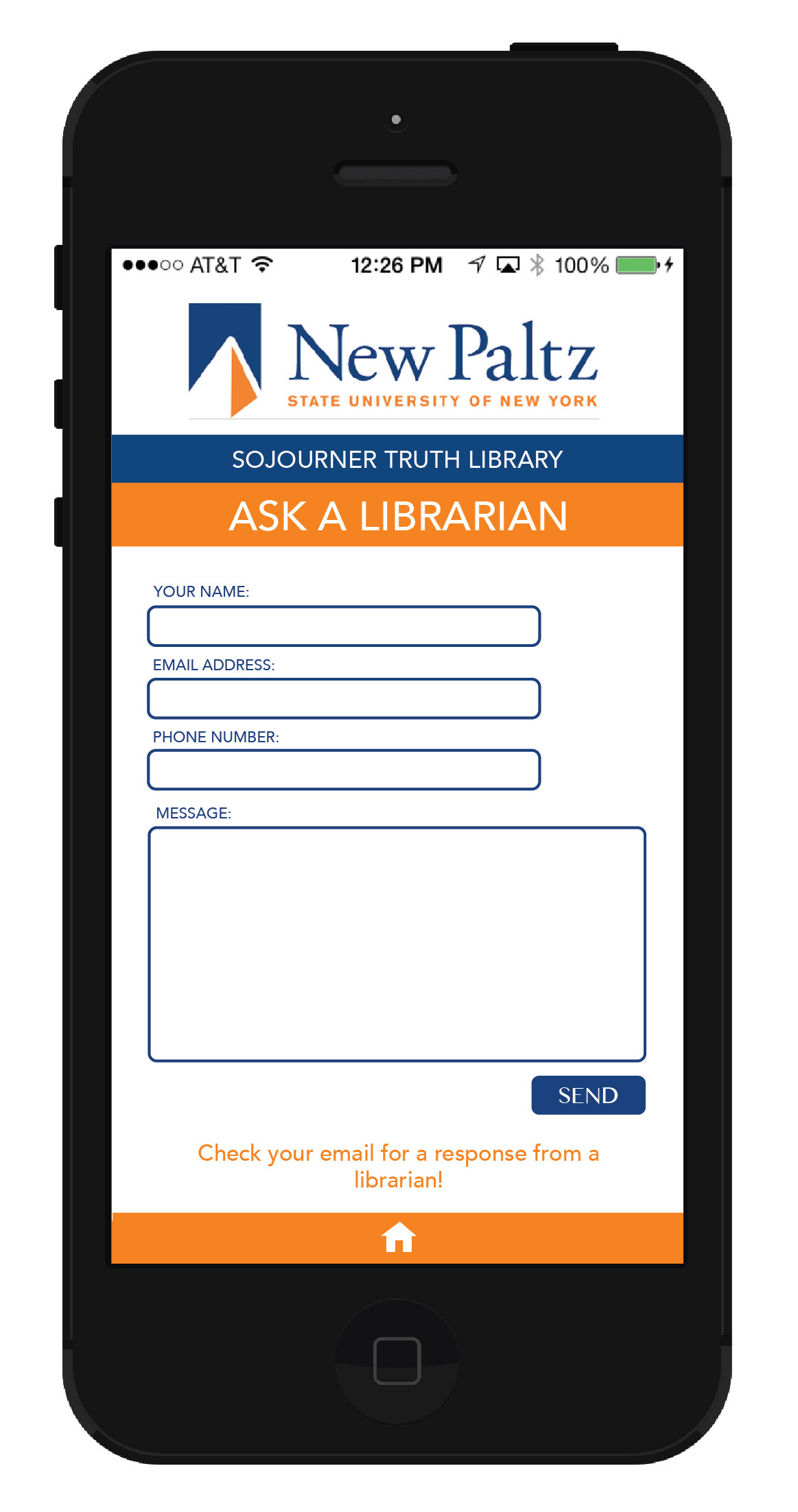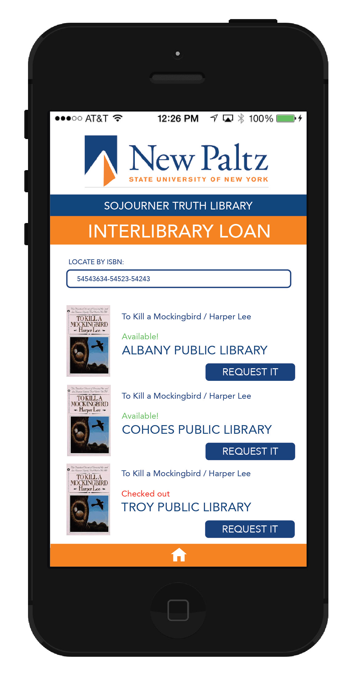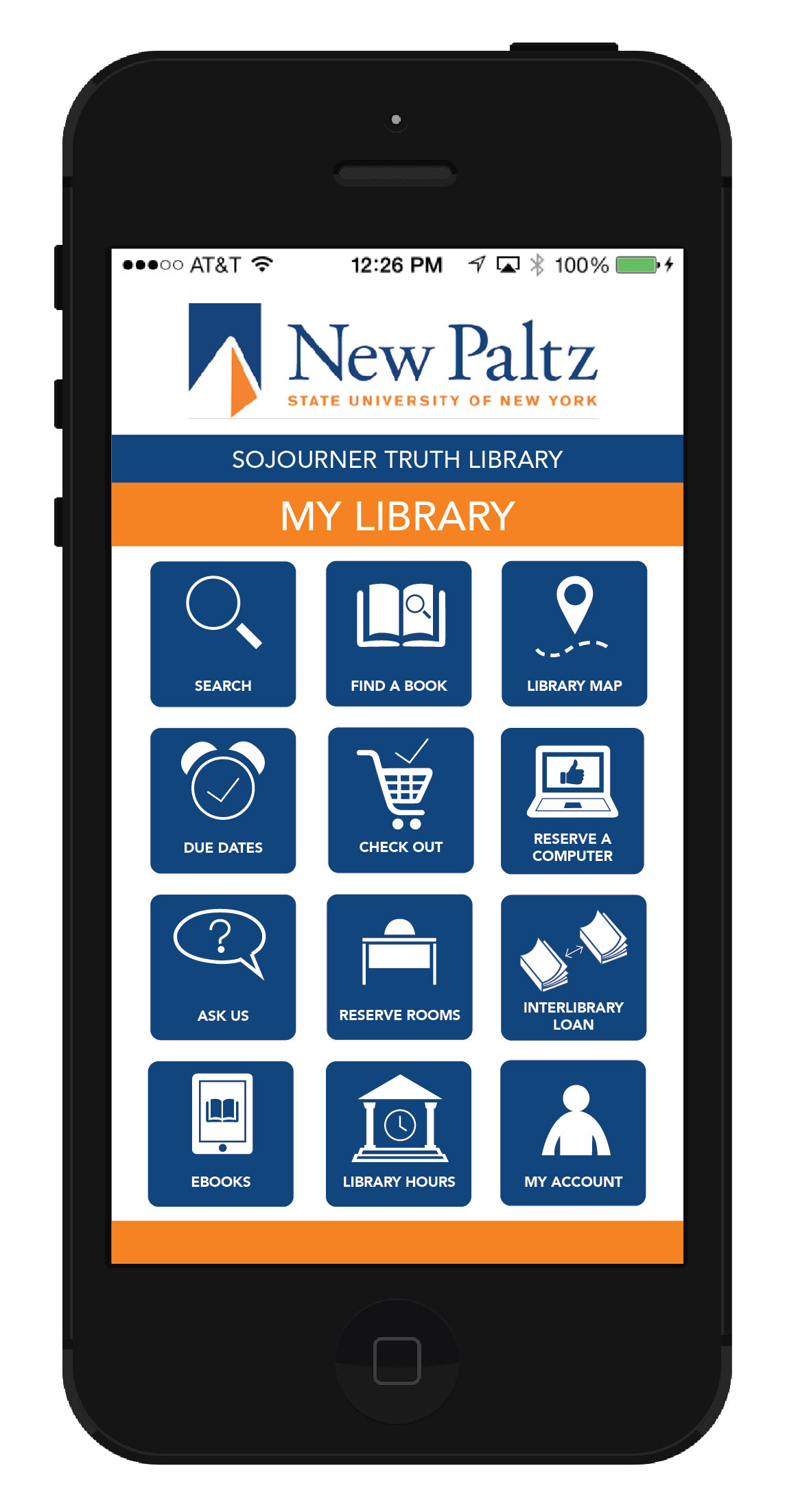 App design for the Sojourner Truth Library at SUNY New Paltz. The app would allow students to access the variety of resources available to them through the library. The goal is to simplify the user experience for library patrons.